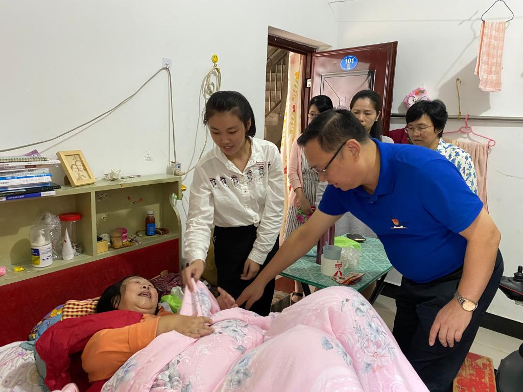 最后,曾武祈向王林慧和她媽媽送上節日慰問品,表達了親切的節日慰問和祝福,叮囑她要注意保重身體,鼓勵王林慧同學要把握住學習機會,積極進取,并提出了三點希望:一是要自立,保持積極向上的心態,正視困難,笑對人生;二是要自強,勵志圖強,全面發展,成長成才。三是要自勵,努力用知識改變自己和家庭的命運,奉獻社會,傳遞愛心。