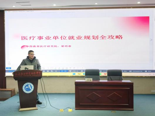 為深入貫徹黨的二十屆三中全會和全國教育大會精神,貫徹落實黨中央、國務院對高校畢業生就業創業工作的決策部署,幫助學生提升職業素養和就業競爭力,護理學院學生第一黨支部于12月30日晚在實訓樓報告廳開展就業指導黨日活動。本次活動特邀華圖教育醫療研究院梁明春老師作《醫療事業單位就業規劃全攻略》專題輔導。護理學院2025屆畢業生線上參加此次活動。