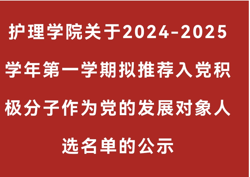 我院根據推優細則情況制定“推優”(黨的發展對象)工作計劃,考核“推優”(黨的發展對象)對象。經個人自愿申請、黨支部培養考察,團支部推薦,團總支審核研究,現將擬推薦2024-2025學年第一學期入黨積極分子作為黨的發展對象的人選名單(附件)予以公示。如有不同意見,歡迎來電反映。