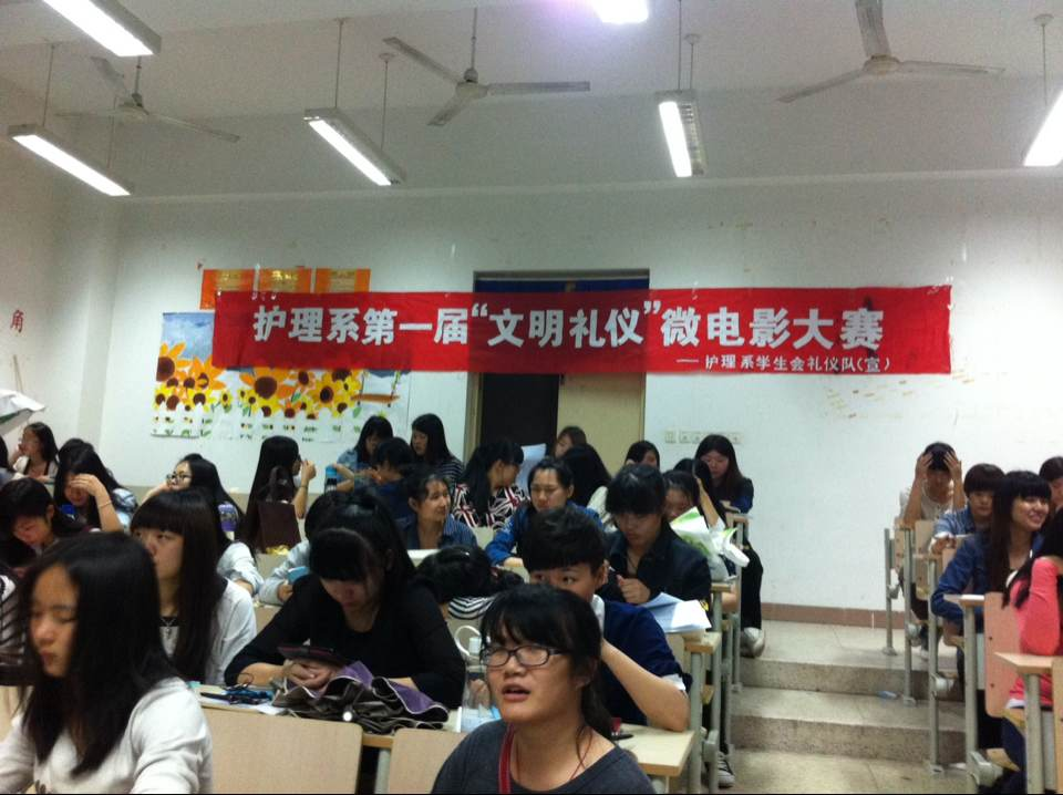 為豐富同學們的課余生活,展現我校大學生健康向上、文明、環保的精神風貌,在我系領導的支持與關心下,在同學們的熱情關注下,由護理系學生會主辦的以“文明禮儀”為主題的微電影比賽于4月10日19:30-21:20在教學樓214拉開帷幕。
