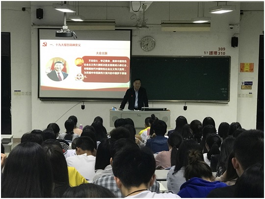 曾書記為讓學生深刻認識學習黨的十九大精神的重大意義,準確把握核心要義,從“十一個新”:新在時代背景、新在實踐基礎、新在歷史使命、新在理論貢獻、新在人民至上、新在文化自信、新在社會治理、新在尊重自然、新在強軍之路、新在外交理念、新在全面從嚴治黨十一個方面對黨的十九大報告做詳細的解讀。曾書記希望與會同志能夠準確把握黨的十九大精神的思想精神和核心要義,自覺用習近平新時代中國特色社會主義思想武裝頭腦,爭當新時代的新青年。