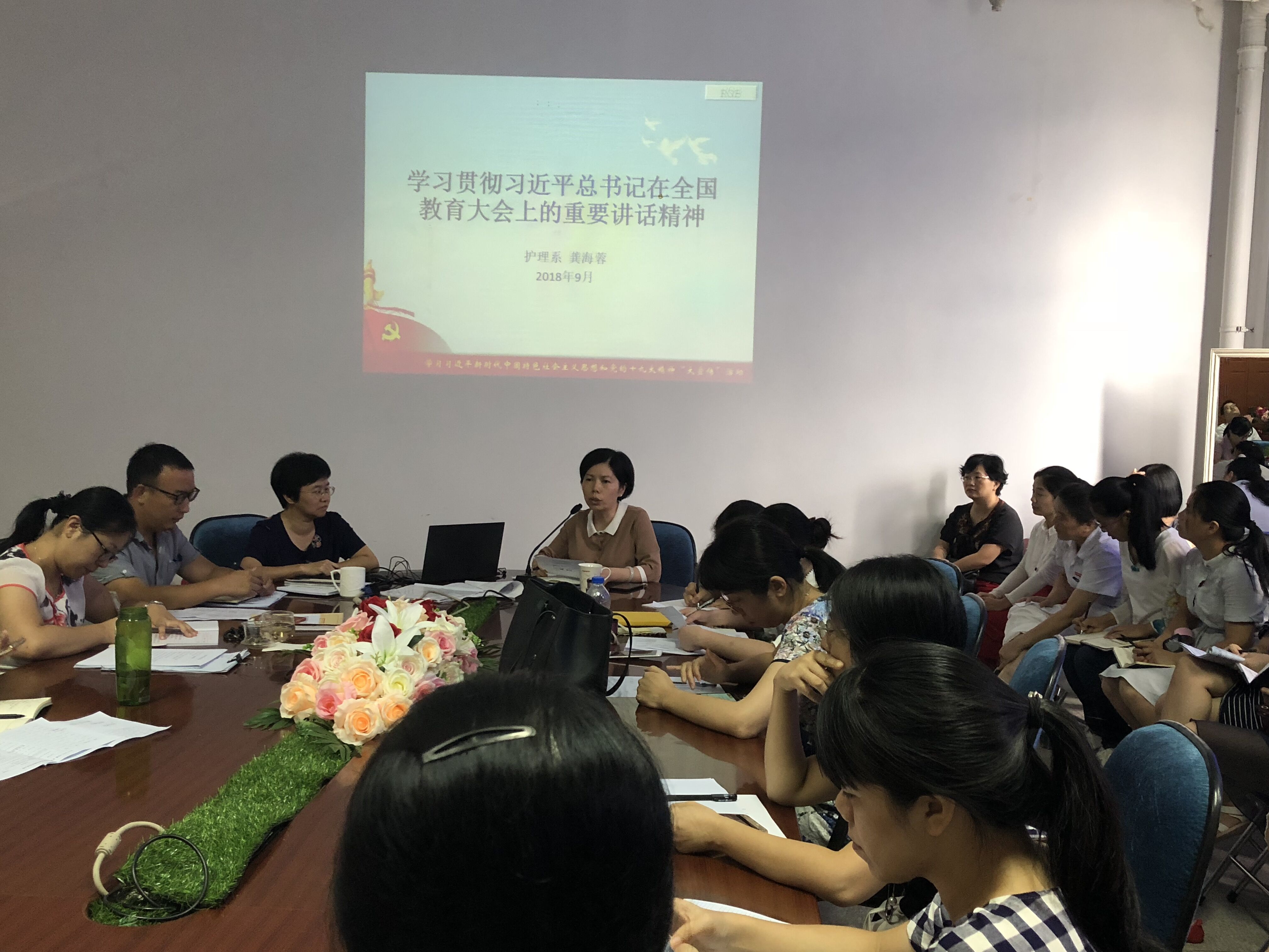 日,護理系學習習近平總書記在全國教育大會上的重要講話精神會議在護理系三樓會議室召開,會議由護理系龔海蓉主任主講,我系全體教職工參加。