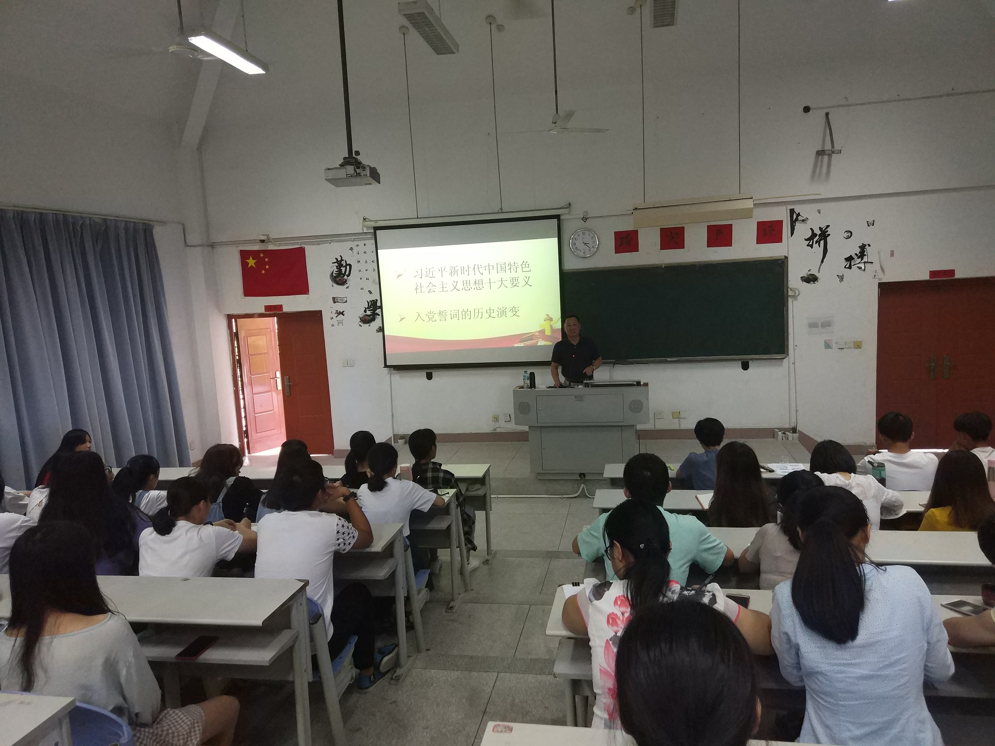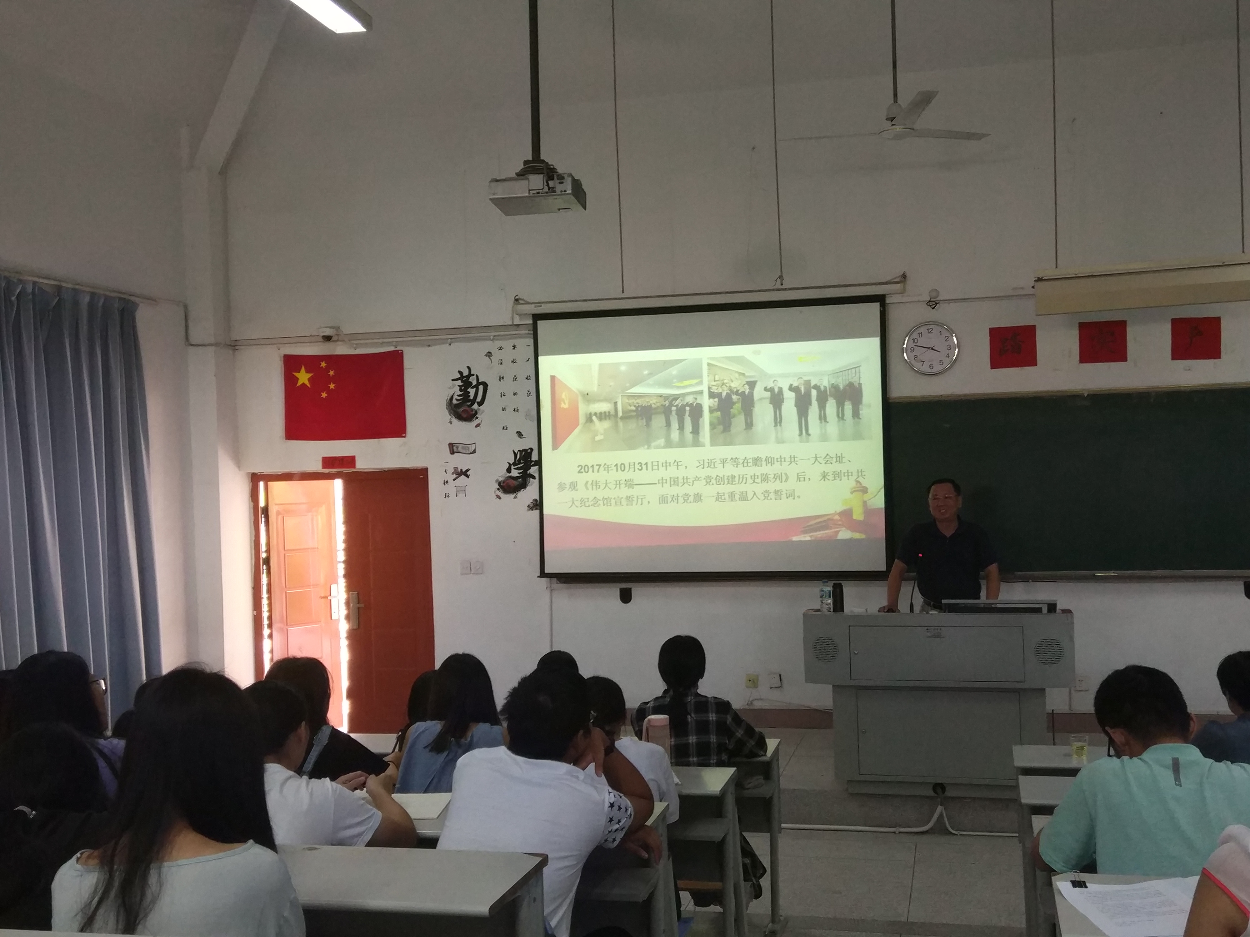 黨課中,曾武祈書記主要從習近平新時代中國特色社會主義思想的立論基礎、奮斗目標、根本路徑、重要保障和領導力量五個層面出發,以歷史方位論、民族復興論、人民中心論、發展理念論、兩大布局論、戰略安排論、強軍戰略論、命運共同體論、深化改革論和強大政黨論為習近平新時代中國特色社會主義思想十大要義,為在座師生黨員、入黨積極分子、學生代表解讀了習近平新時代中國特色社會主義思想的精神實質和豐富內涵。此外,曾武祈書記還從入黨誓詞的由來、我黨不同時期的誓詞以及不同時期入黨誓詞的意義三方面解讀了我們入黨誓詞的歷史演變。