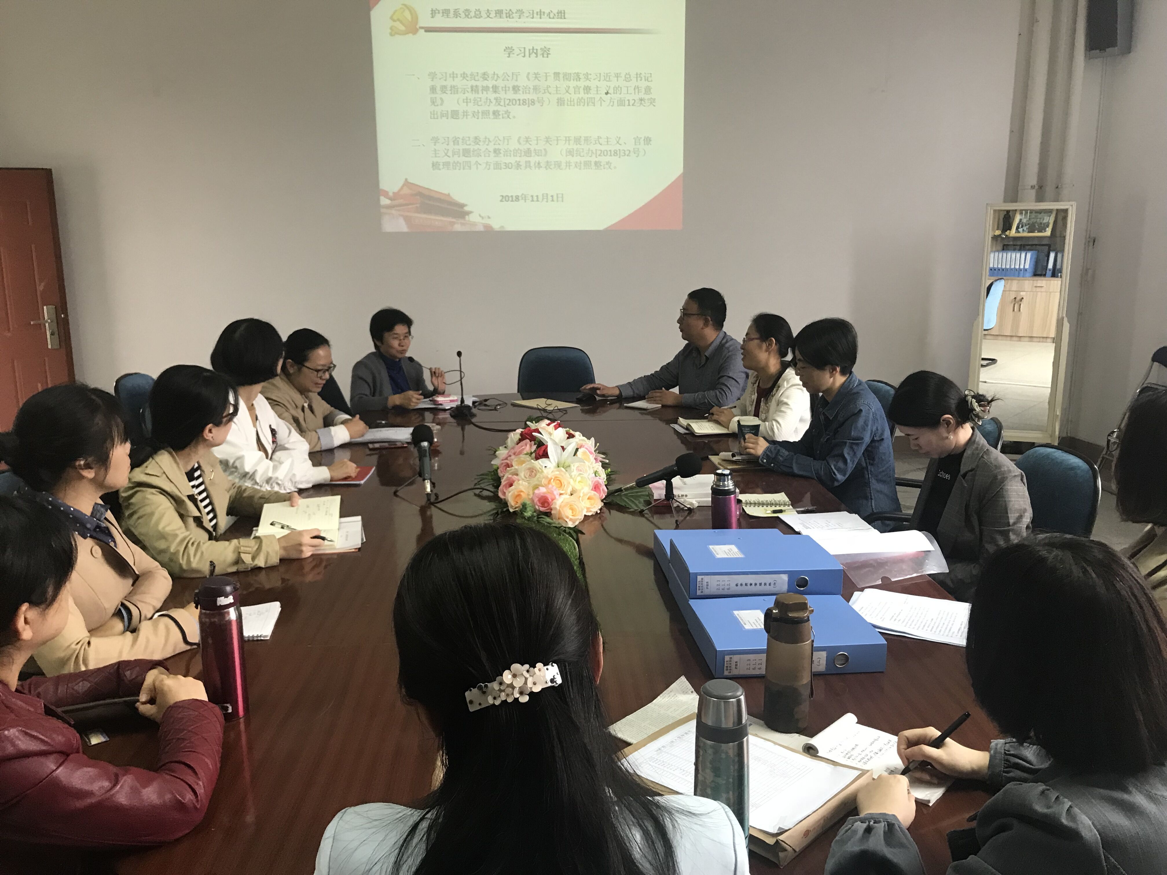 護理系黨總支理論學習中心組組織學習整治形式主義、官僚主義工作的相關文件精神