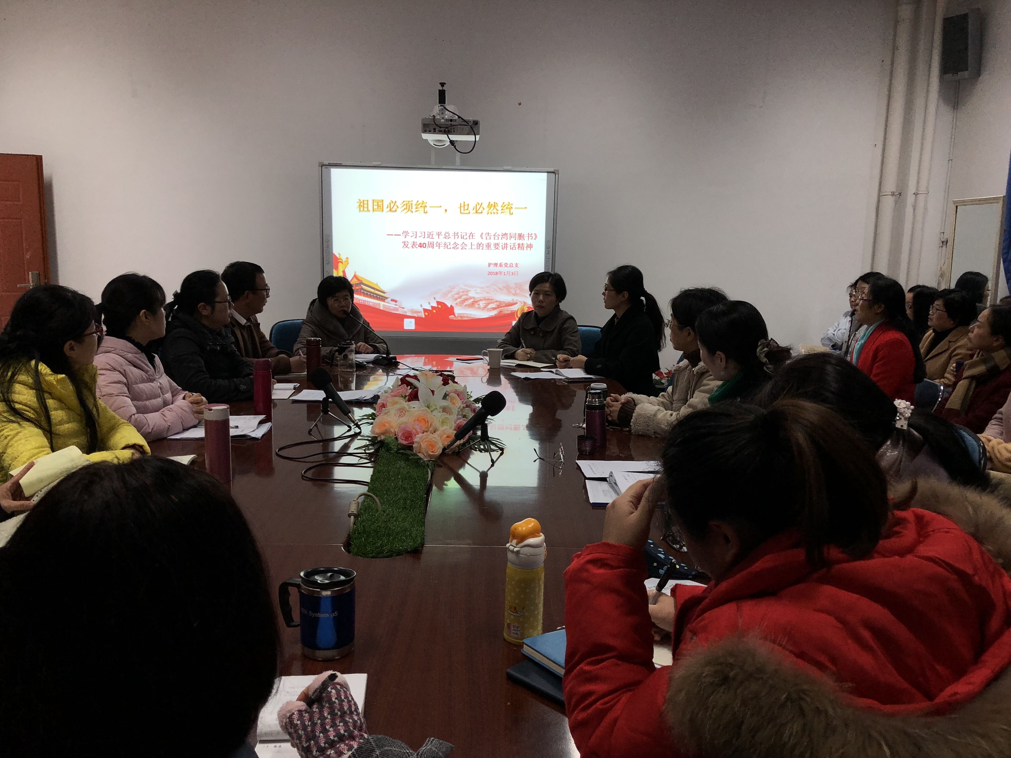 1月2日,《告臺灣同胞書》發表40周年紀念會在北京人民大會堂舉行,習近平總書記出席紀念會并發表重要講話。為充分學習領會習近平總書記的重要講話精神,2019年1月3日,護理系黨總支于護理系301會議室組織學習了習近平總書記在《告臺灣同胞書》發表40周年紀念會上的重要講話精神。此次會議由護理系黨總支謝濤書記主持,護理系全體教職工參加了此次學習。
