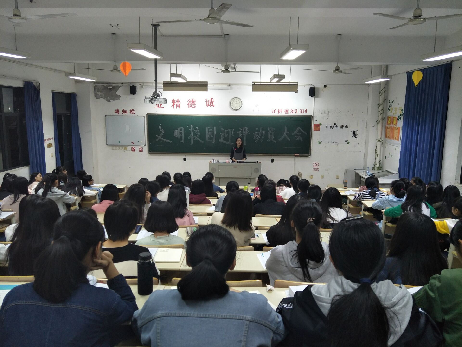 2017年11月6日晚上7:00,護(hù)理系召開(kāi)迎接省級(jí)文明校園檢查學(xué)生工作動(dòng)員大會(huì)。大會(huì)首先由謝濤書(shū)記、林桂松副書(shū)記向全體輔導(dǎo)員傳達(dá)學(xué)院迎評(píng)精神和學(xué)生管理工作布置要求。接下來(lái),由輔導(dǎo)員組織各班級(jí)召開(kāi)專(zhuān)題班會(huì),將學(xué)院工作精神傳達(dá)到每一位學(xué)生,并對(duì)每名學(xué)生的精神面貌、行為規(guī)范、環(huán)境美化都提出了具體的要求,鼓勵(lì)學(xué)生以積極的心態(tài)投入迎評(píng)工作,也當(dāng)作一次精神的洗禮。