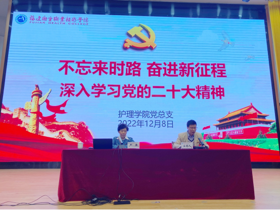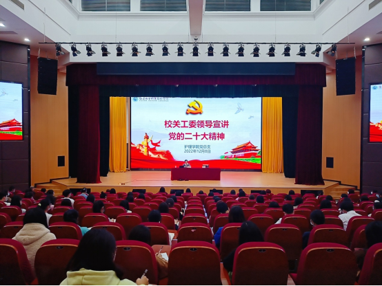 為深入學(xué)習(xí)貫徹黨的二十大精神,12月8日下午,護理學(xué)院黨總支開展“不忘來時路,奮進新征程”主題活動。本次活動有幸邀請到校關(guān)工委主任嚴肅、副主任陳雄作為主講嘉賓,護理學(xué)院師生代表和組織統(tǒng)戰(zhàn)部、人事處、財務(wù)處共計200余人現(xiàn)場參加宣講會,護理學(xué)院其他師生通過線上收聽收看宣講報告。