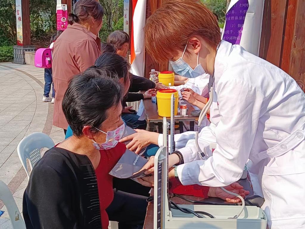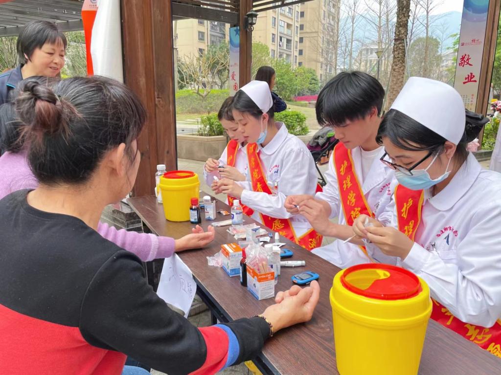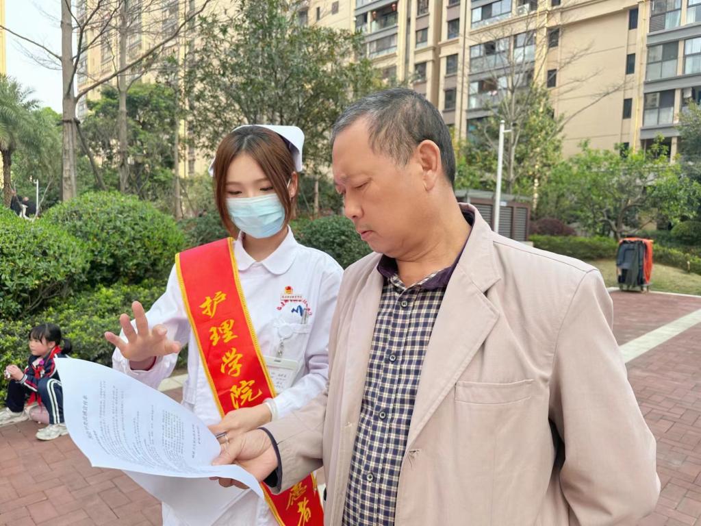 公益義診,守護健康。3月21日下午,護理學院攜手中鐵城居委會走進中鐵城社區舉行“學雷鋒,行義診”志愿服務活動。活動現場,團學干部免費為居民測血糖、量血壓,同時,還進行了心肺復蘇、海姆立克急救法等急救知識的科普以及操作。同學們與居民親切交談,給居民們進行健康宣教,耐心解答患者問題。讓居民們了解更多健康知識,提高居民自我保健意識,增強了居民對一些常見病、多發病的認識。