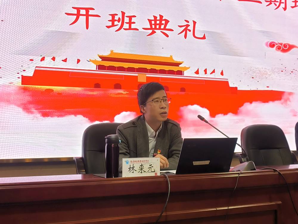 開班典禮結束后,黨總支副書記林來元以《端正入黨動機,爭做合格黨員》為題,圍繞中國共產黨的三大歷史貢獻、對黨的認識以及黨員的權利與義務、樹立正確的入黨動機、如何以實際行動爭取早日入黨四個內容為培訓班全體學員上培訓班第一次黨課,引導同學們進一步端正入黨動機,樹立遠大理想,以實際行動爭取早日入黨。