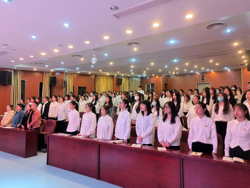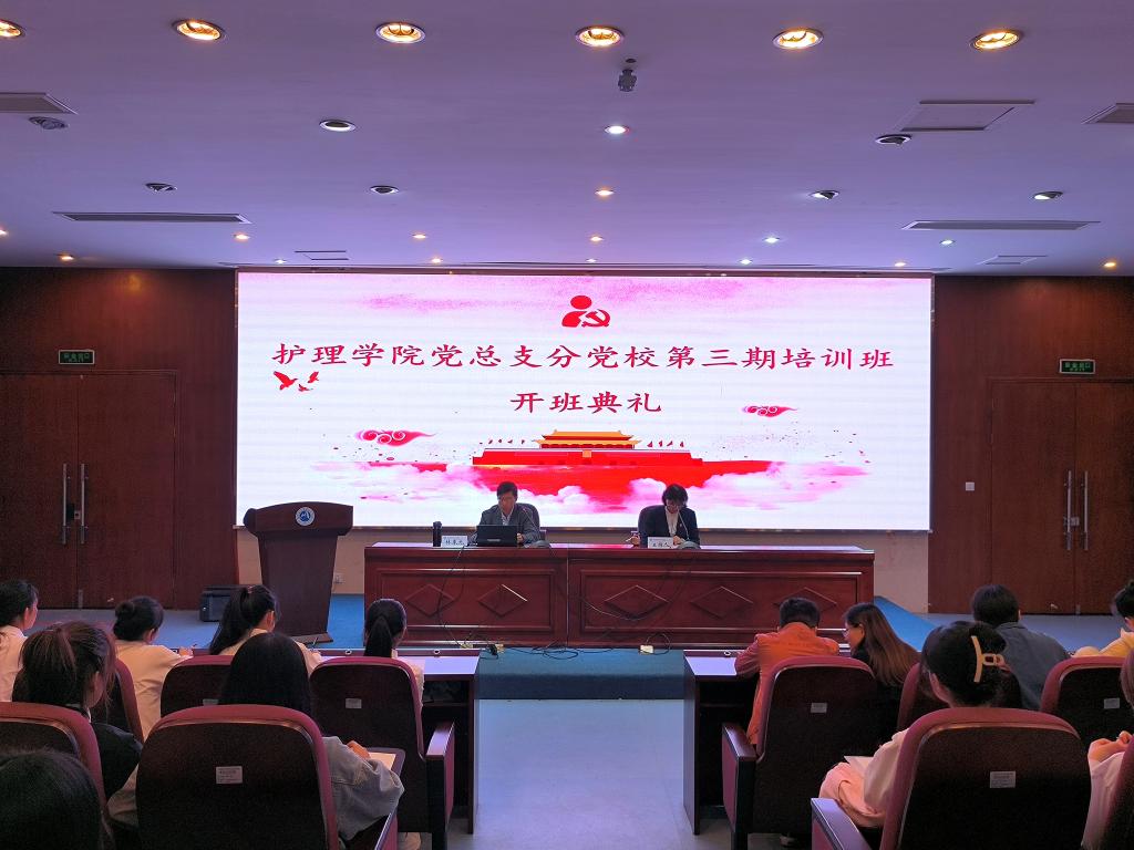 為學習宣傳貫徹習近平新時代中國特色社會主義思想和黨的二十大精神,深入落實新時代黨的建設的總要求和新時代黨的組織路線,切實做好入黨積極分子的培養教育工作,充實黨員隊伍后備力量,提升黨員發展質量,嚴把發展黨員“入口關”,4月6日晚,護理學院黨總支分黨校第三期培訓班開班典禮暨黨課第一講在實訓樓報告廳順利舉行。護理學院黨總支副書記林來元、學生黨支部書記、輔導員及護理學院22級全體入黨積極分子出席開班典禮,開班典禮由黨總支專職組員許慧瓊主持。