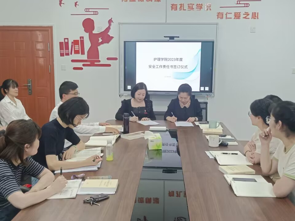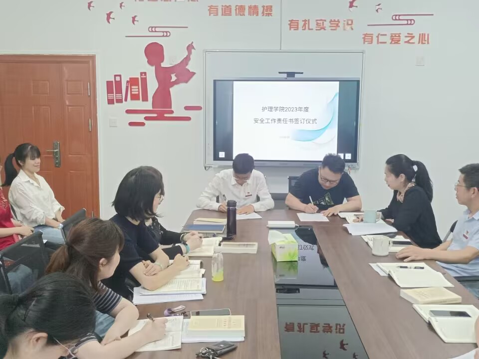 最后,龔海蓉與各教研室主任、林來元與各輔導員分別簽訂《護理學院2023年教研室安全工作責任書》、《護理學院2023年學生安全穩定工作責任書》,做到層層壓實安全責任,層層傳導工作要求,推動安全責任落地落實落細。
