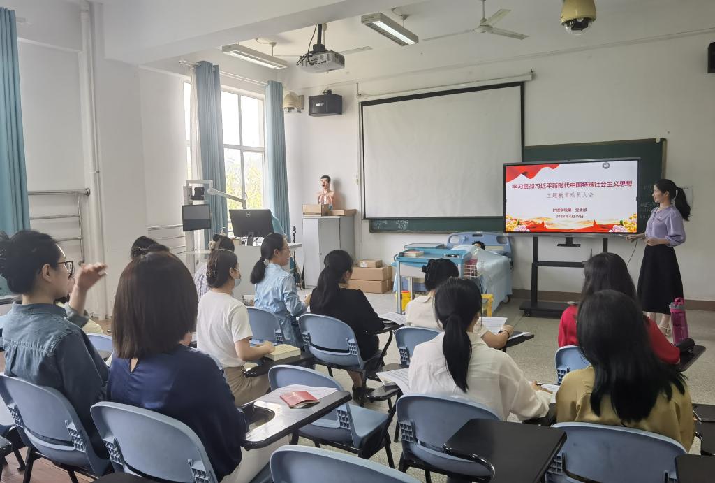 4月28日,護理學院第一黨支部召開學習貫徹習近平新時代中國特色社會主義思想主題教育動員大會。