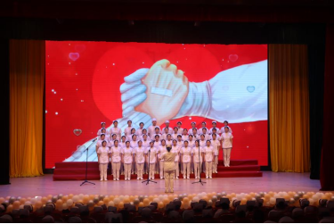 合唱表演《護士之歌》歌頌每一位護理人用奉獻澆灌生命,用生命守護生命,奉獻無疆大愛,綻放青春色彩。