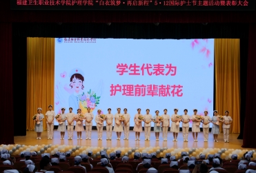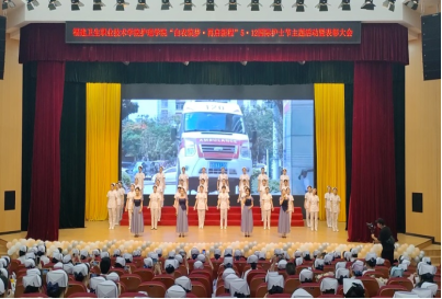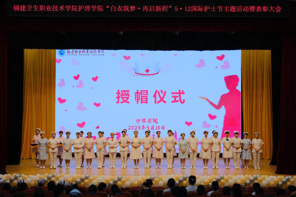初心與夢想,大愛與感動,在燕尾帽的傳遞中熠熠生輝。為繼承和弘揚南丁格爾不畏艱險、甘于奉獻、救死扶傷、勇于獻身的人道主義精神,5月18日下午,護理學院在學術報告廳舉行“白衣筑夢·再啟新程”5·12國際護士節主題活動暨表彰大會。福建衛生職業技術學院校長許能鋒、省市屬醫院護理前輩、校團委書記林桂松、校學生工作部副部長張麗萍、護理學院領導班子和全體教師以及2021級全體學生等共計1300余人參加此次活動。