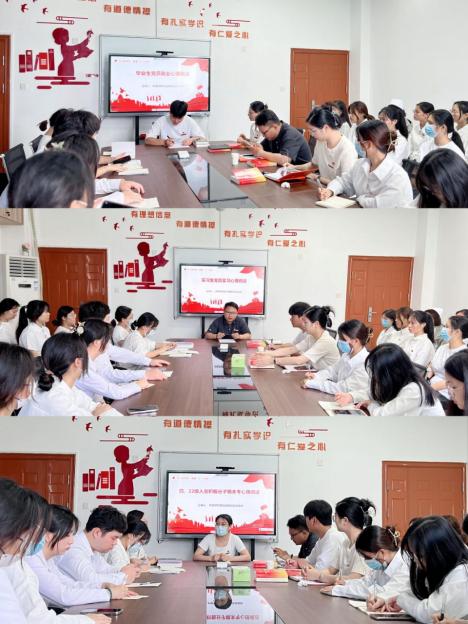實習(xí)班輔導(dǎo)員卓立濤以學(xué)生下臨床實習(xí)的心理情緒變化為重點,講述學(xué)生在實習(xí)過程中會遇到學(xué)習(xí)、就業(yè)、人際關(guān)系等方面的壓力,引導(dǎo)學(xué)生在實習(xí)中應(yīng)積極應(yīng)對困難,注重培養(yǎng)醫(yī)護(hù)技能。