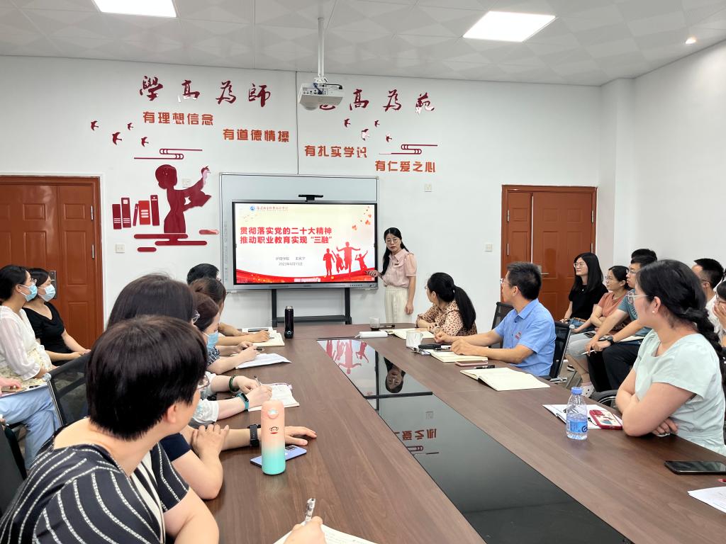 根據學習貫徹習近平新時代中國特色社會主義思想主題教育工作安排,6月15日下午,護理學院副院長王憲寧以《貫徹落實黨的二十大精神,推動職業教育實現“三融”》為題,為護理學院全體教師講授黨課。