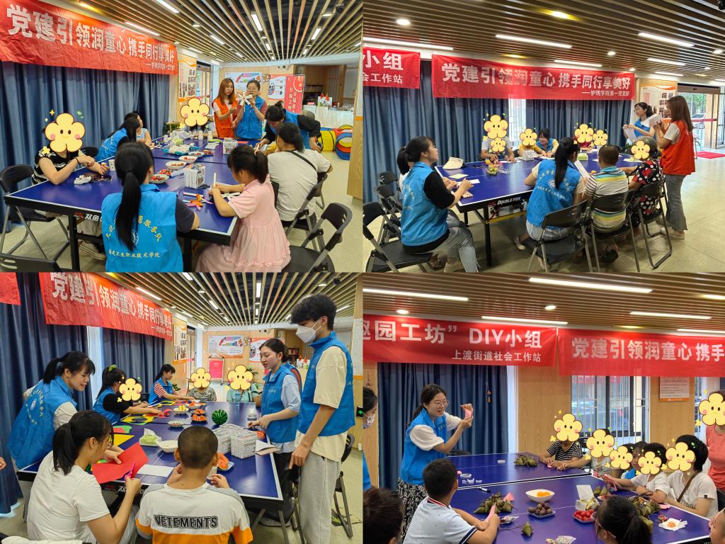 此次困境兒童幫扶系列活動結合節日節點和夏季特點分別以“端午節、建黨節、風車、西瓜、烏龜”為分主題開展了五次活動。支部成員為困境兒童講繪本故事,帶兒童跳熱身操,開展感統訓練和手工活動。