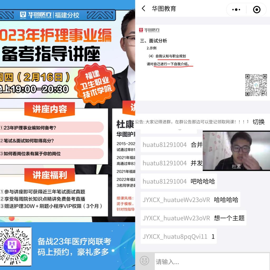 2月16日晚,黨支部邀請到華圖醫療(福建分校)護理教研院院長杜康為畢業生開展護理事業編備考指導講座,杜康院長主要圍繞政策解讀、如何備考、面試準備等三個方面向同學們做了詳細的指導。