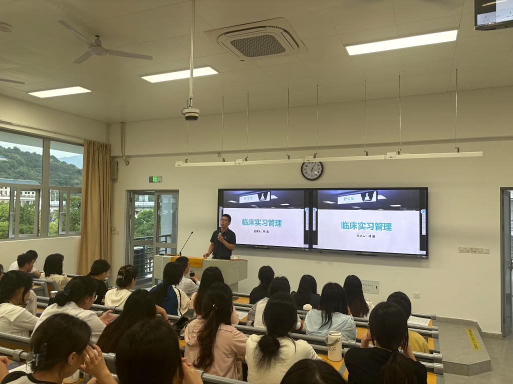 為加強(qiáng)學(xué)生實(shí)習(xí)業(yè)務(wù)指導(dǎo)和日常教育管理工作,幫助學(xué)生順利完成實(shí)習(xí)任務(wù),5月10日下午,護(hù)理學(xué)院在學(xué)院第五階梯教室召開(kāi)2022級(jí)學(xué)生實(shí)習(xí)動(dòng)員部署會(huì)。護(hù)理學(xué)院黨總支副書記林來(lái)元、副院長(zhǎng)林浩、2022級(jí)輔導(dǎo)員、各實(shí)習(xí)單位隊(duì)長(zhǎng)及副隊(duì)長(zhǎng)、省外自主實(shí)習(xí)學(xué)生共150余人參加了此次會(huì)議。