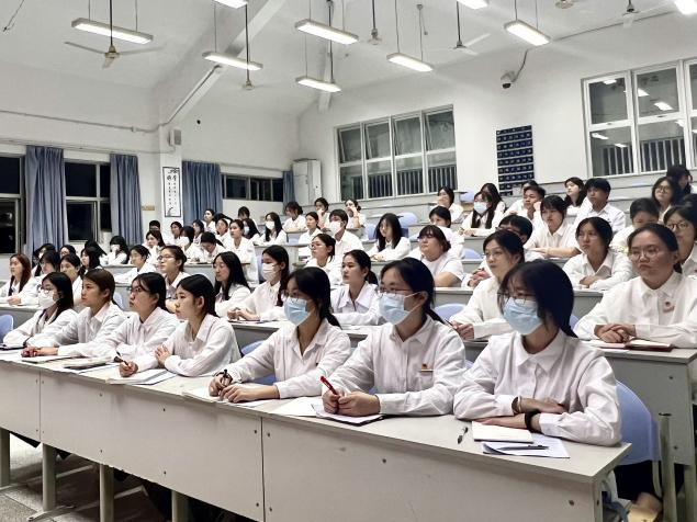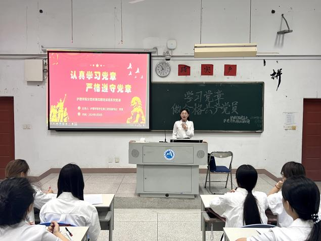 5月8日晚,護理學院學生第三黨支部書記李英以“認真學習黨章,嚴格遵守黨章”為題向護理學院黨總支分黨校第四期培訓班的學員進行集中授課。