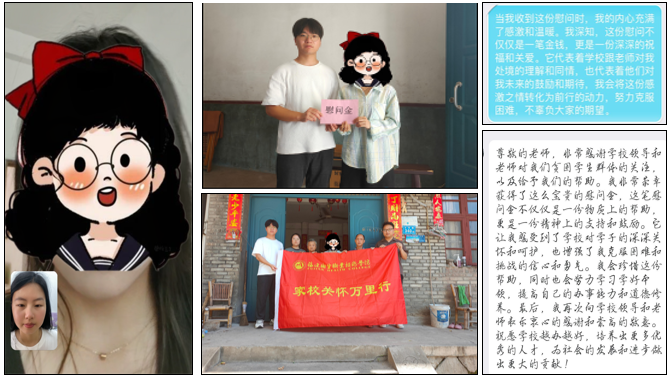 學生和家長對老師們送來的慰問品和慰問金表示感謝,對學校長期以來給予的幫助和支持表示衷心的謝意,受訪學生們紛紛送上感謝短信,表示會將困難化作前進力量,努力提升自我,不負期望。