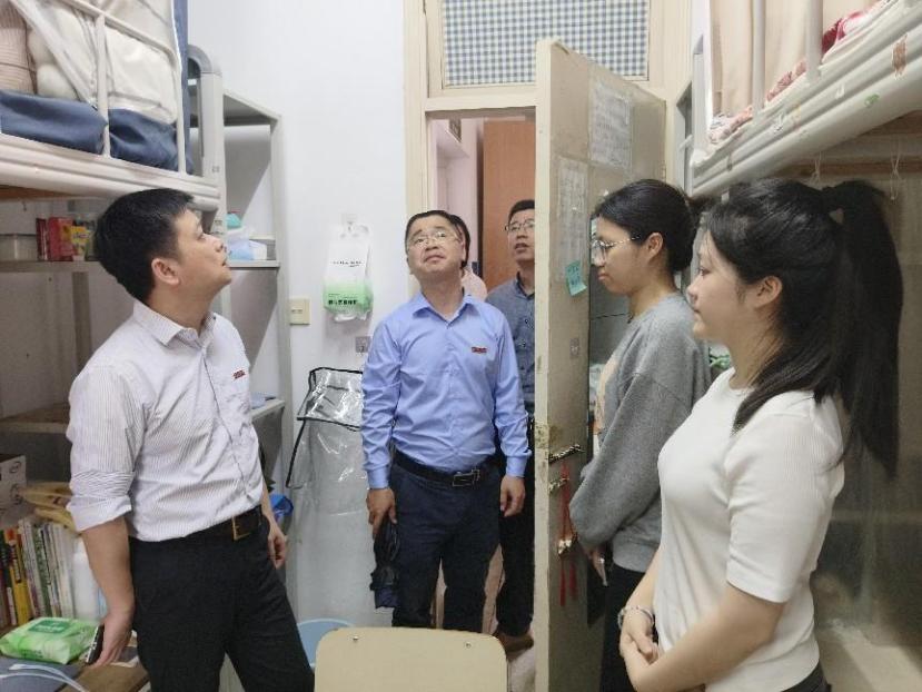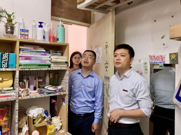 在走訪過程中,副校長周雄與同學(xué)們親切交談,細致詢問日常起居、學(xué)業(yè)進展及未來規(guī)劃。他強調(diào),學(xué)校高度重視“一站式”學(xué)生社區(qū)建設(shè),將在暑期優(yōu)先升級改善部分學(xué)生宿舍生活設(shè)施,努力為學(xué)生提供更好的學(xué)習(xí)生活環(huán)境。同時,他要求,護理學(xué)院要以“一站式”學(xué)生社區(qū)建設(shè)為契機,進一步完善主題宿舍創(chuàng)建機制,暢通學(xué)生意見反饋機制,把社區(qū)服務(wù)做實做細。