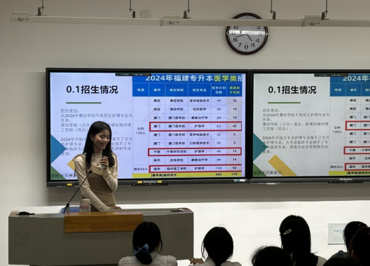 接著,許佳鳳分享了她護理專業升本的經驗。許佳鳳在專升本考試中取得了優異的成績,她結合自己的備考經歷,為同學們提供了詳細的復習計劃和報考建議。從護理專業升本的院校介紹到備考的教材選擇,許佳鳳都一一進行了詳細的講解。她還特別強調了護理專業升本的難點和重點,鼓勵同學們要扎實基礎,注重實踐,不斷提升自己的專業素養。
