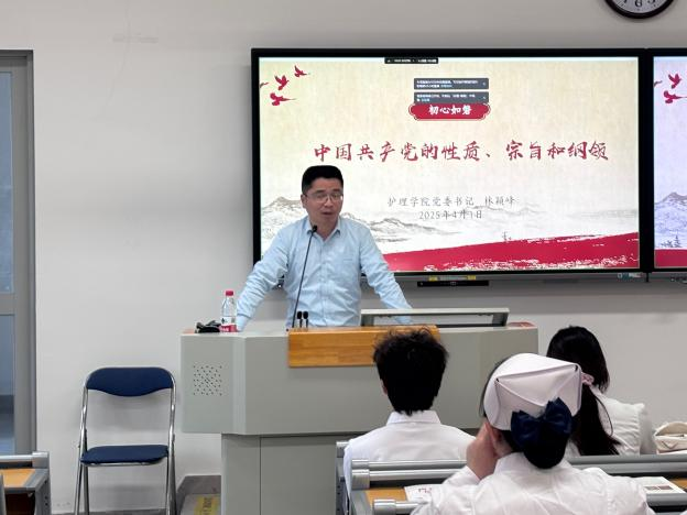 為進一步加強入黨積極分子的教育,提高綜合素質、培養黨的后備力量,4月1日,福建衛生職業技術學院護理學院分黨校第五期培訓班開展第二次集中授課。本期由林穎峰書記授課,課程圍繞《中國共產黨的性質、宗旨和綱領》展開,旨在引導學員深化理論認知,筑牢信仰之基。