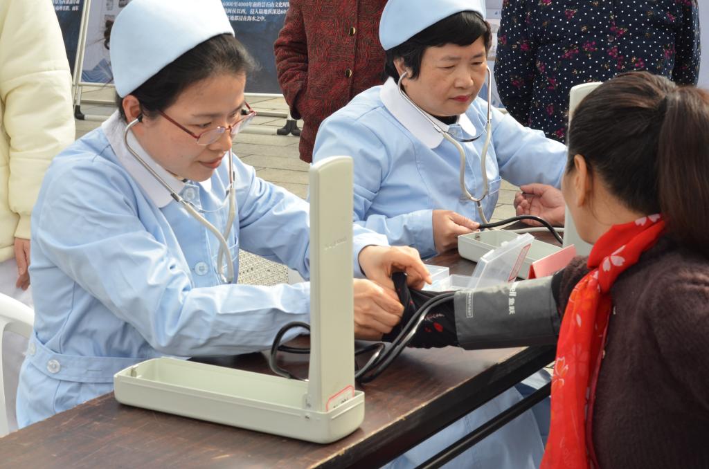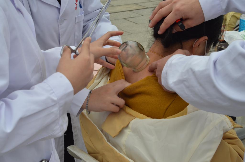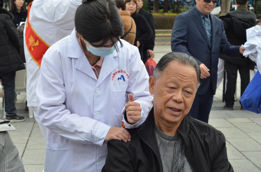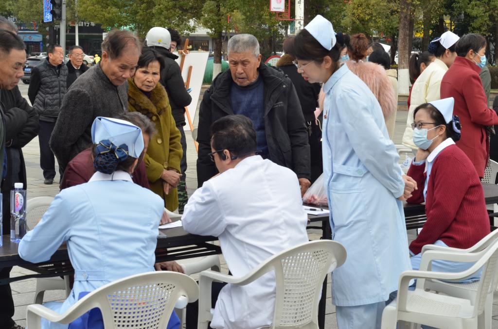 活動中,黨員教師帶領學生志愿服務隊成員耐心地為居民測血壓、量血糖、推拿、拔罐,普及高血壓和糖尿病等慢性病的防治知識。