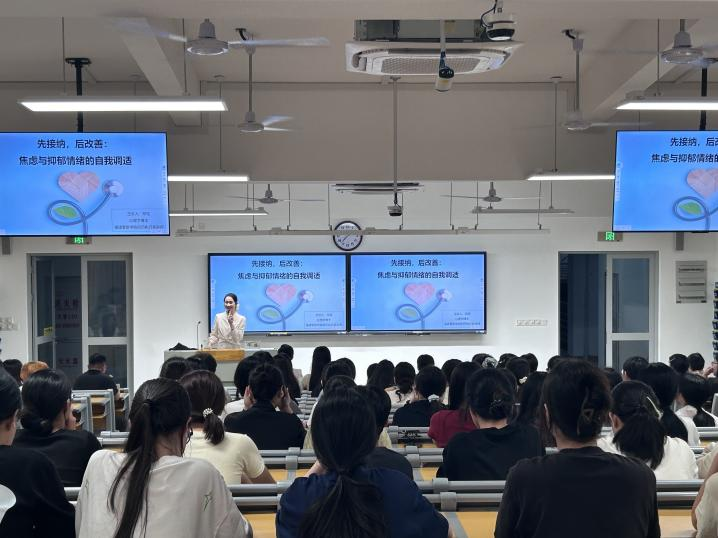鄧鈺博士開展《先接納,后改善:焦慮與抑郁情緒的自我調適》,在講座中,深入剖析了焦慮的來源與癥狀,幫助同學們追溯焦慮情緒的根源,并詳細闡述了抑郁的多樣表現,使聽眾對這兩種心理健康問題有了更為深刻的認識。鄧鈺博士還分享了一系列調適方法,包括認知重構、情緒調節技巧及積極參與社交活動等,旨在幫助同學們建立積極的應對策略,提升自我調適能力。
