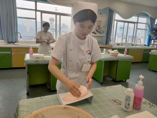 本次競賽對象為22級助產(chǎn)專業(yè)全體學(xué)生,競賽包括初賽、決賽兩個環(huán)節(jié)。初賽共選拔校內(nèi)班和校企合作班共24名同學(xué)進(jìn)入決賽,決賽項目為產(chǎn)婦堵奶手法操作。他們在這里展示了扎實的專業(yè)技能和敏銳的臨床思維能力。