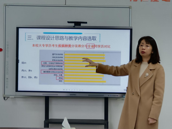 外科護理教研室主任吳明作為護考應試能力專項訓練負責人,針對2022年護考情況進行了分析,并對2023年護考培訓工作計劃進行了介紹。骨干教師們針對護考的趨勢及培訓的具體工作進行討論,并圍繞如何提高學生的學習積極性、如何保證培訓效果等問題建言獻策。