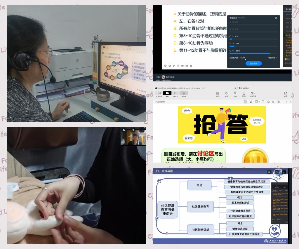 受疫情的影響,學(xué)校暫停線下教學(xué),開啟了將近一個月的線上授課。線上教學(xué)成為護(hù)理學(xué)院師生傳送知識、交流情感的紐帶。老師們結(jié)合課程特點(diǎn)和線上經(jīng)驗,積極調(diào)整教學(xué)方式和方法,一方面保證在“沒有眼神交流”的情況下盡量將知識點(diǎn)講透,還要輔以練習(xí)確保學(xué)生盡可能地掌握課程內(nèi)容;另一方面,結(jié)合網(wǎng)課的特點(diǎn)合理有效設(shè)計PPT、互動環(huán)節(jié)、休息時間等,讓網(wǎng)課更加有“現(xiàn)場感”,同時又讓學(xué)生感受到老師的關(guān)心關(guān)愛,讓網(wǎng)課更加有“溫度”。