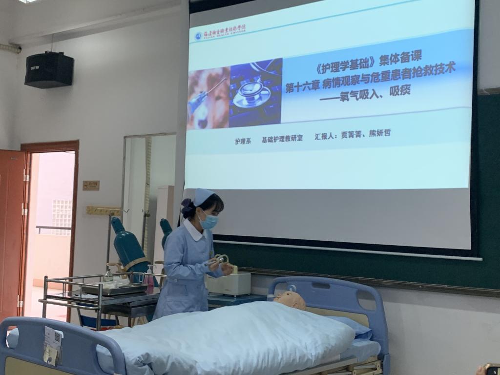 為了進(jìn)一步提高教師的備課效果和教學(xué)水平,提高基礎(chǔ)護(hù)理教學(xué)質(zhì)量,發(fā)揮黨員先鋒模范作用,2020年10月16日上午10點(diǎn),護(hù)理系基礎(chǔ)護(hù)理教研室組織教研室全體教師暨護(hù)理系第一黨支部黨員教師在護(hù)理系206教室開展了《病情危重患者的搶救技術(shù)》中“吸痰法” 操作技術(shù)的集體備課活動(dòng)。