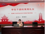 陳梅欽老師在提升學生干部素質和能力上,提出“1+2+3+4+5”新時代學生干部模式,希望學生干部時刻保持為同學全心全意服務的初心,以身作則,樹立良好榜樣。另外,陳梅欽老師針對學生干部常用禮儀,強調學生干部應加強言語表達、規范待人接物禮儀、會議禮儀等,希望在未來成長道路上,展現良好的形象和素養,樹立正確的價值觀和行為準則。