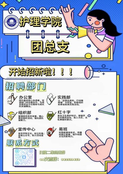 護理學院團總支期待與你們攜手并進,共創輝煌。若你心懷熱忱,渴望成長,就請掃描下方二維碼,加入我們這個充滿活力的大家庭吧!讓我們一起,在青春的舞臺上綻放光芒,書寫屬于我們的精彩篇章!