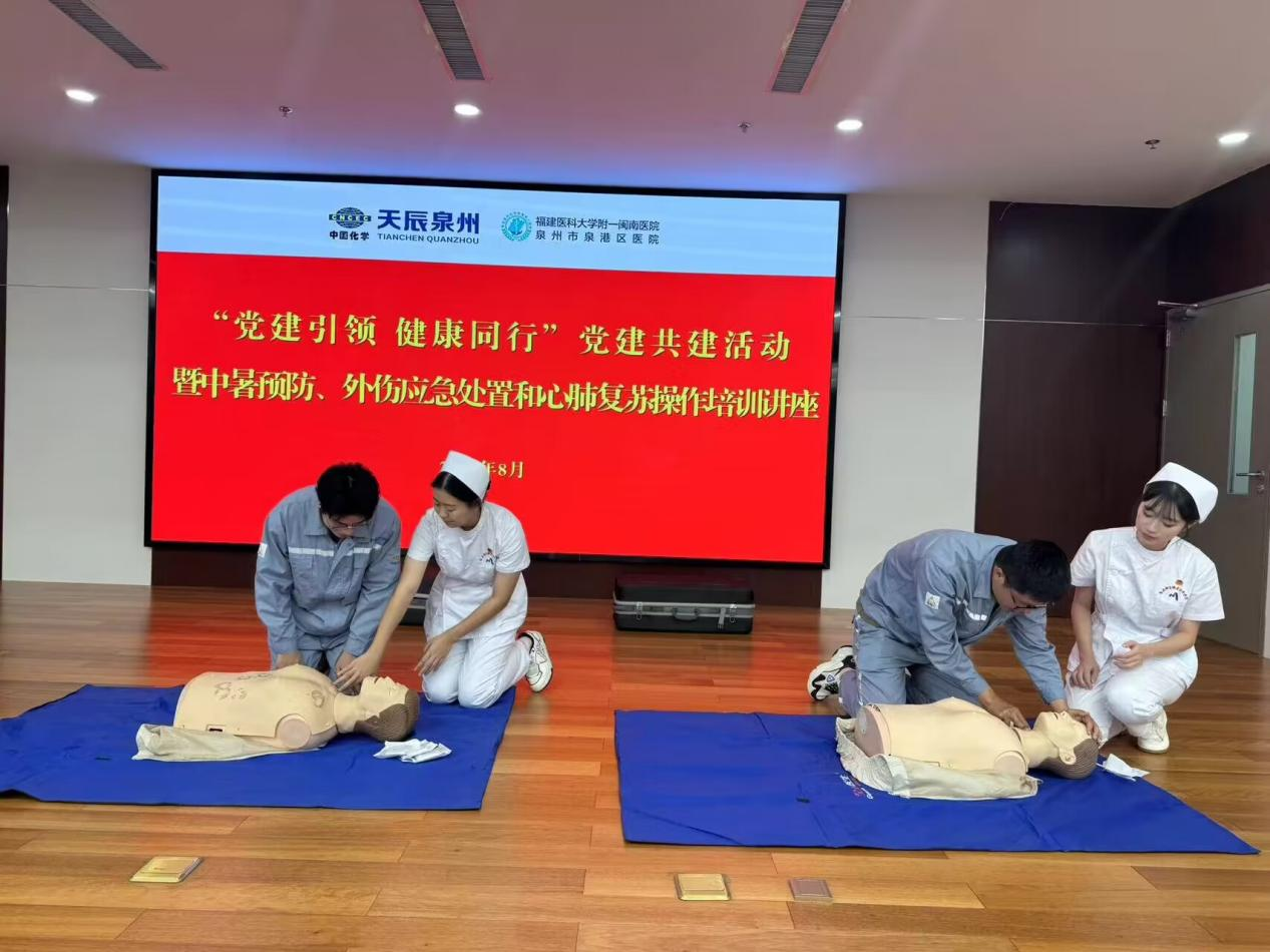 在2024年8月9日下午,福建衛(wèi)生職業(yè)技術(shù)學(xué)院護(hù)理學(xué)院第二黨支部副書記林婕老師帶領(lǐng)護(hù)理學(xué)院“夢飛天使”志愿服務(wù)隊的隊員們攜手福建醫(yī)科大學(xué)附一閩南醫(yī)院泉州市泉港區(qū)醫(yī)院一同前往中化學(xué)天辰(泉州)新材料有限公司為職工開展醫(yī)學(xué)知識宣教與CPR的演示與教學(xué)活動。