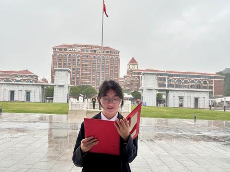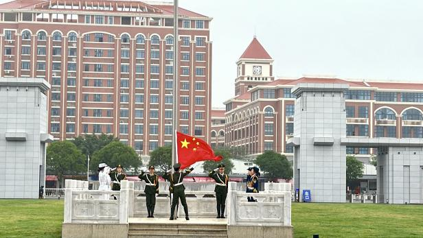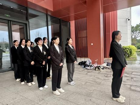清晨的崇健樓正門廣場莊嚴肅穆,護理學院團學骨干列隊站立。伴隨著雄壯的國歌聲,鮮艷的五星紅旗在同學們的注目禮中緩緩升起,迎風飄揚。