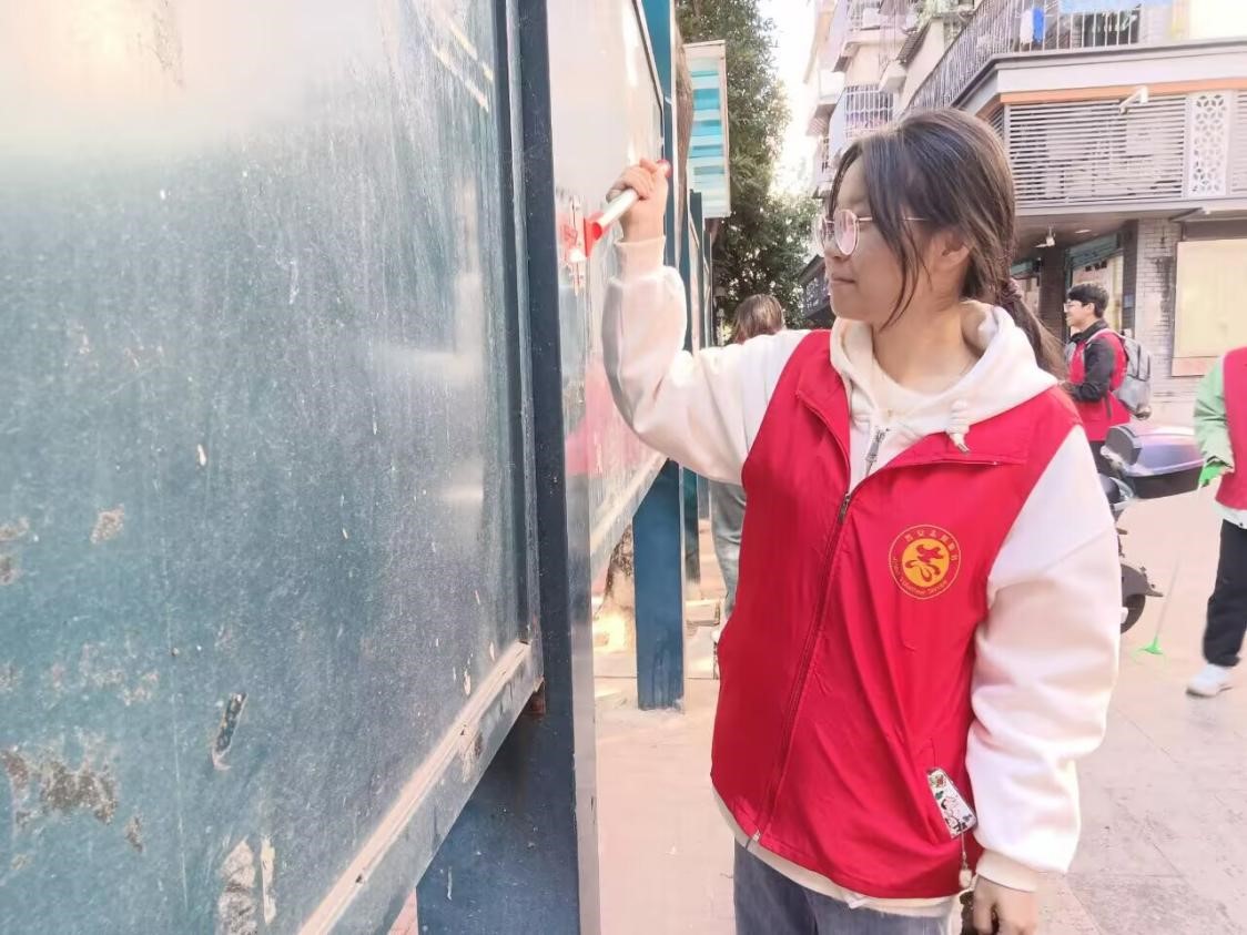 垃圾分類是生態文明建設的關鍵環節。走進社區,你會看到身著鮮艷志愿服的同學們活躍在各個場景。有的同學手持清潔工具,仔細地清理著樓道內的小廣告和灰塵,讓原本布滿斑駁的墻壁煥然一新。他們不放過任何一個角落,讓社區居民的生活環境更加整潔舒適。