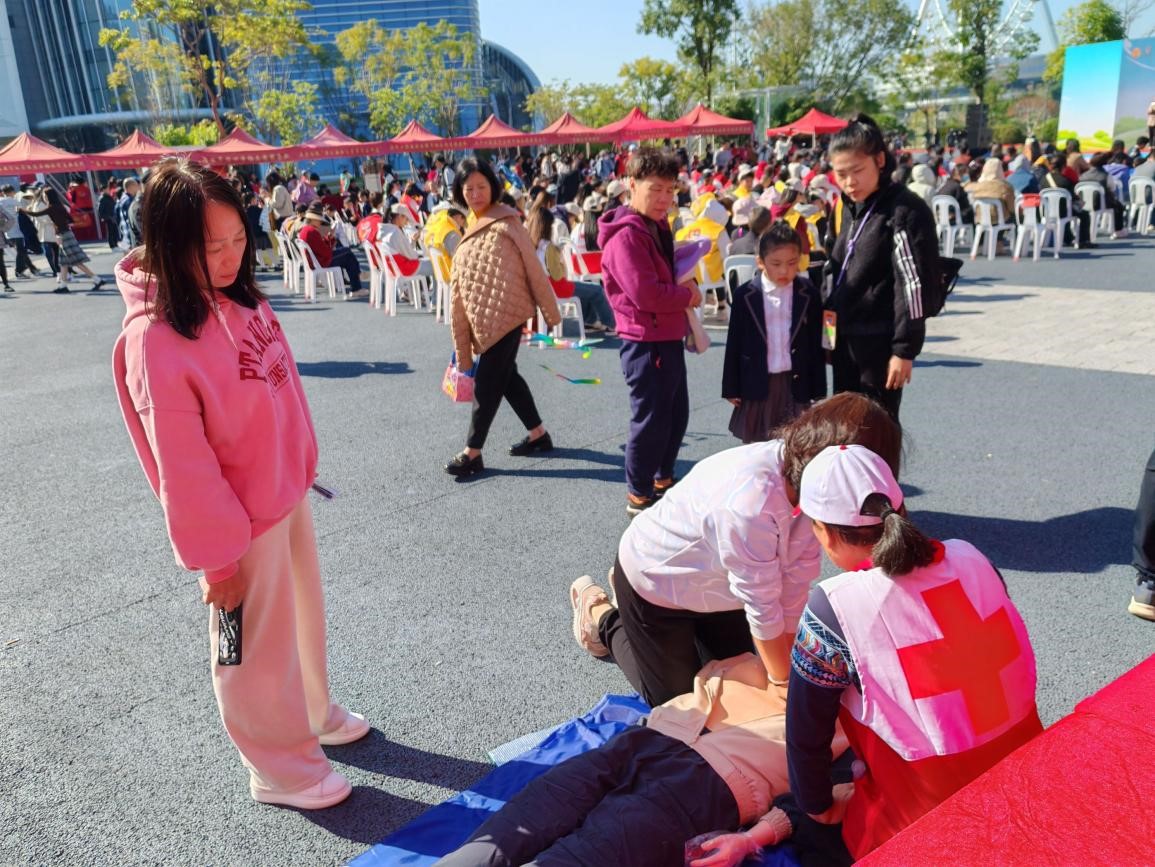 急救知識是保障生命安全的重要防線。在社區廣場上,另一組志愿者們他們利用人體模型,現場演示心肺復蘇等常用急救技能的操作步驟,從按壓的位置、頻率、深度,到氣道的打開方式、異物的排出技巧等,都一一詳細解說并反復示范。居民們紛紛踴躍參與,在志愿者的指導下親身體驗急救操作,許多居民表示:“這些急救知識和技能以前只是聽說過,今天真正上手操作了才知道其中的要點和重要性,以后遇到突發情況心里就有底了?!?/span>