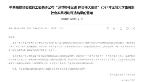 正是這份執著與擔當,讓元欣怡在眾多參與者中嶄露頭角,榮獲福建省教育廳“追尋領袖足跡,體悟偉大變革”優秀實踐學生榮譽稱號。這一榮譽不僅是對她個人努力的肯定,更是對所有積極投身社會實踐的學子們的鼓勵。