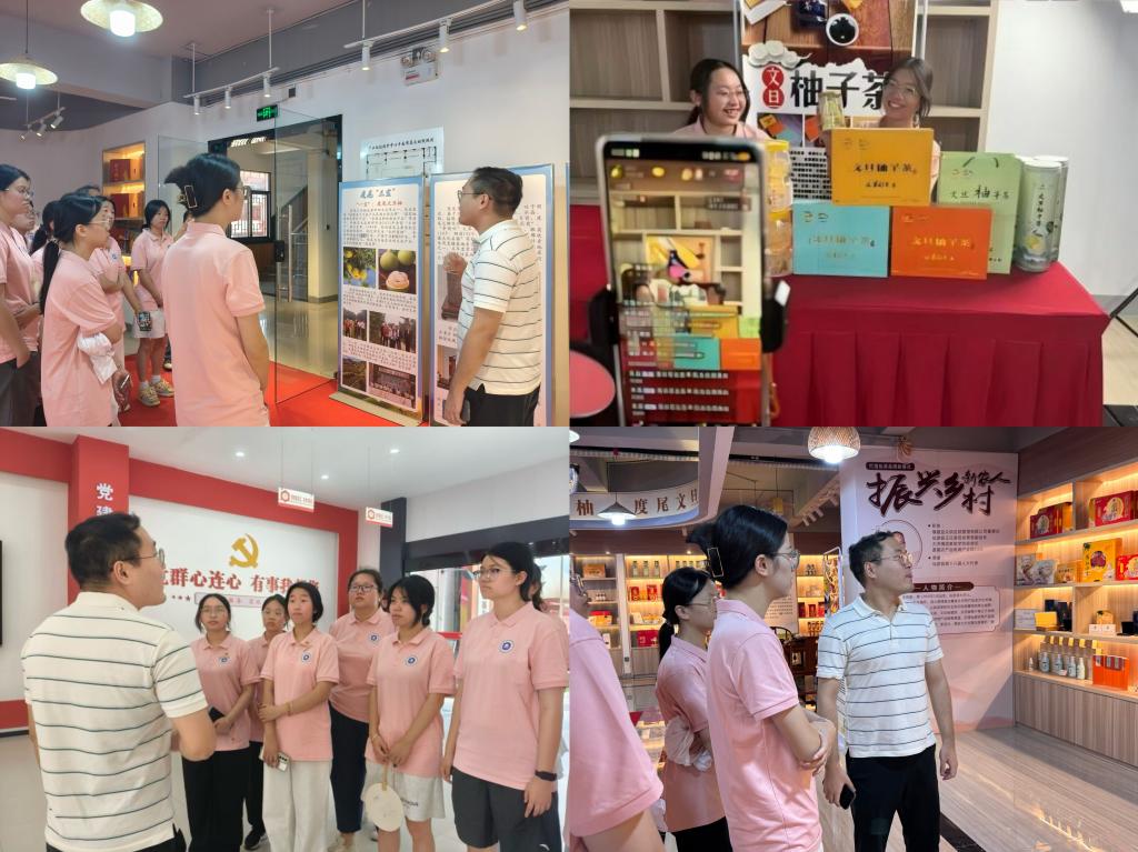 在柚相鄰二樓產(chǎn)業(yè)能級提升中心,同時也是文旦柚助農(nóng)直播基地,隊員們積極參與助農(nóng)直播,詳細介紹文旦柚的營養(yǎng)價值、特色口感以及柚子茶、柚子醬、柚子果脯等衍生產(chǎn)品的制作工藝和風味。依托合作基地,他們積極建言獻策,推動加強品牌建設,打造具有地域特色和市場競爭力的文旦柚品牌,促進產(chǎn)業(yè)向標準化、規(guī)模化、品牌化發(fā)展,讓小小文旦柚真正“聯(lián)”通千家萬戶,成為撬動鄉(xiāng)村振興、凝聚最美鄉(xiāng)韻的“黃金果”。