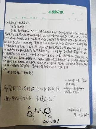 在感謝信中,患者們對陳瀅同學表達了深深的感激之情。“直到你們的出現,同我聊天,讓我又找到了快樂!”“是你同那兩位護士姐姐給我帶來了情緒的穩定劑——快樂!”陳瀅同學用她溫柔的話語緩解了患者的焦慮與恐懼,她不僅僅是一名優秀的實習護士,更是一位心靈的守護者。