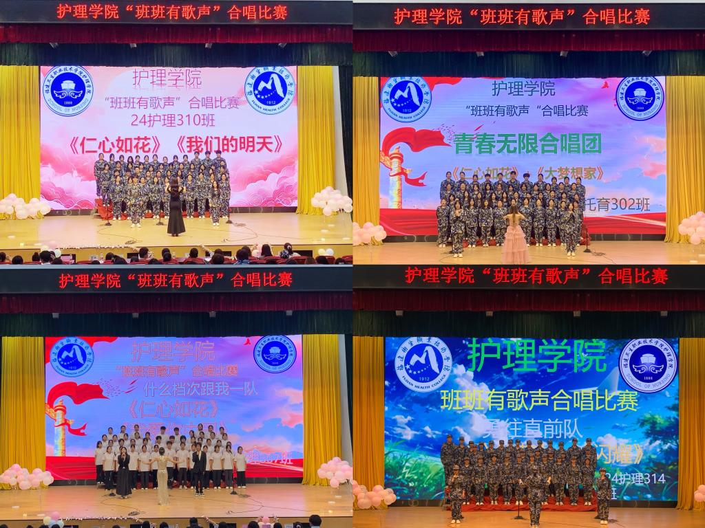 以嘹亮歌聲唱出青春真情懷,以滿腔激情奏響愛國最強音,護理學院以班級為單位,共計24個班參加此次合唱比賽,各班級按抽簽順序依次上場。分別表演校歌《仁心如花》以及一首朝氣紅星歌曲,讓我們一起回顧一下大家出色的演出吧!