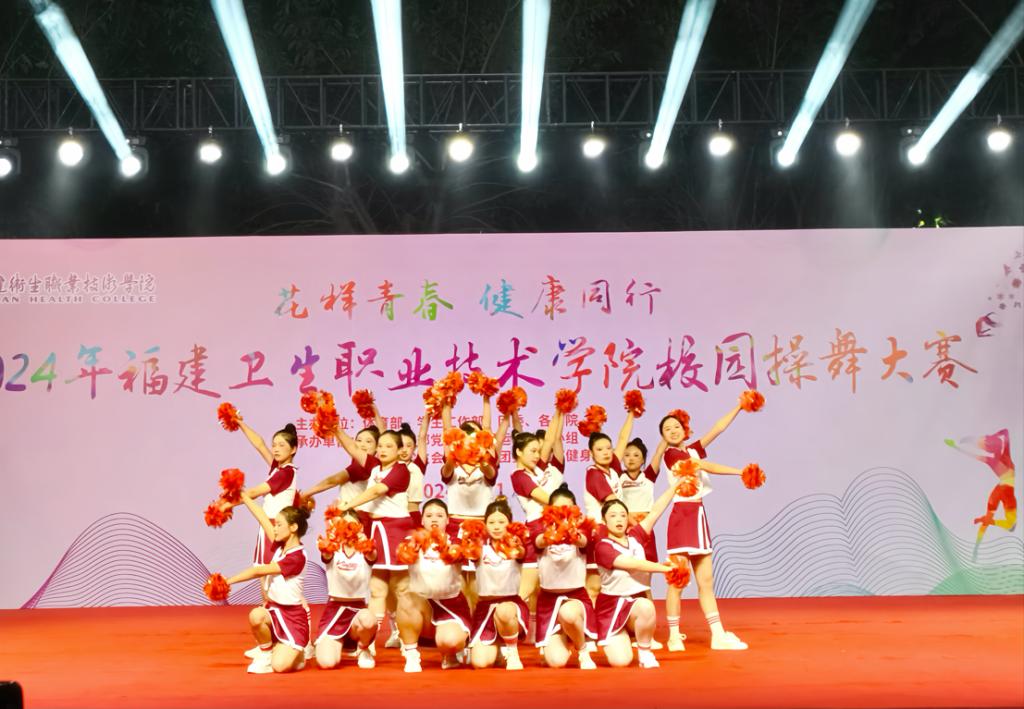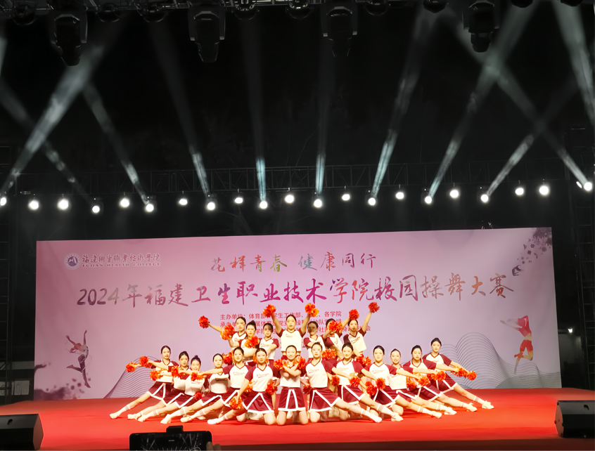 賽場上,啦啦操隊員們揮動著花球,激情四射。
