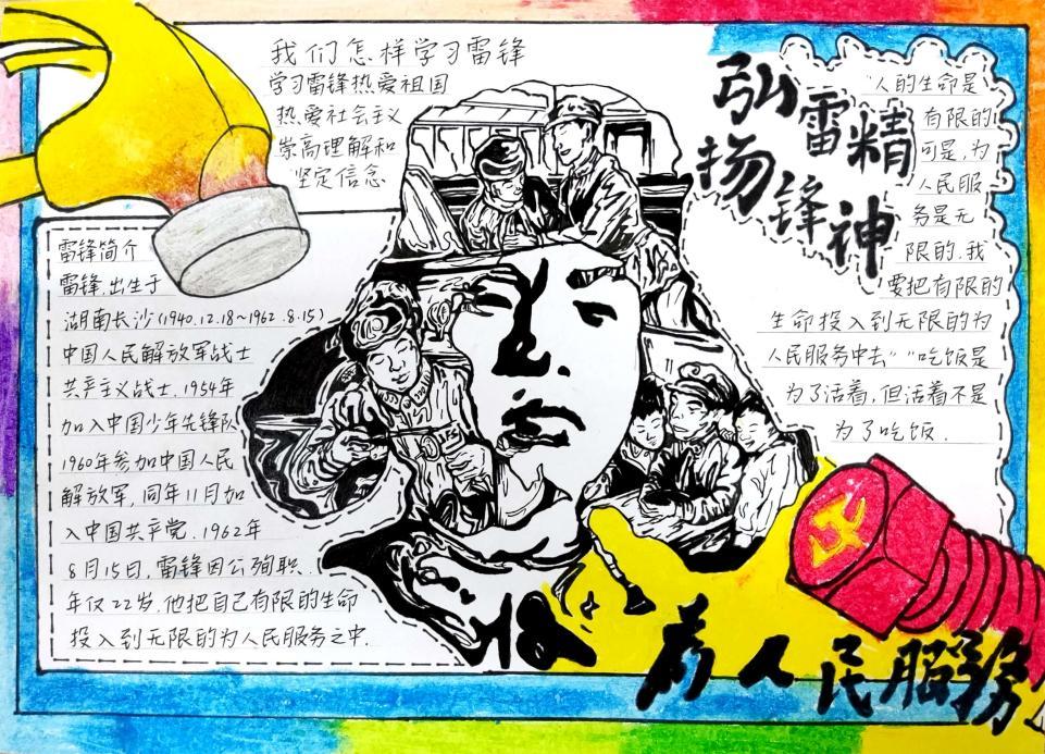 在這里,眾人拿起畫筆,通過繪制海報、手抄報、漫畫等形式,生動地講述雷鋒的感人故事。讓每一抹鮮艷的色彩、每一處巧妙的排版,都成為傳遞雷鋒精神的橋梁,讓那些溫暖人心的事跡,在作品中鮮活呈現。