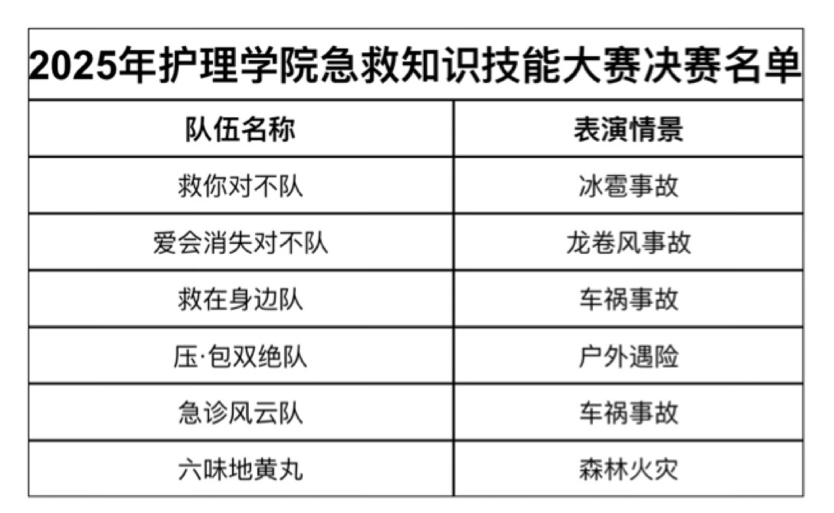 第三環節于2025年4月23日在青年之家多功能廳開始,同學們將通過情景演練的方式向評委展示各項技能操作,以此鍛煉大家的臨場應變能力和心理素質。最終我們擇優選出六支隊伍參與最終護理學院急救知識技能大賽決賽,讓我們敬請期待大家的優秀表現吧!