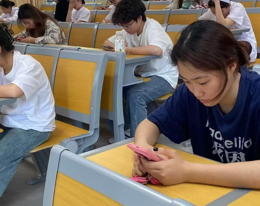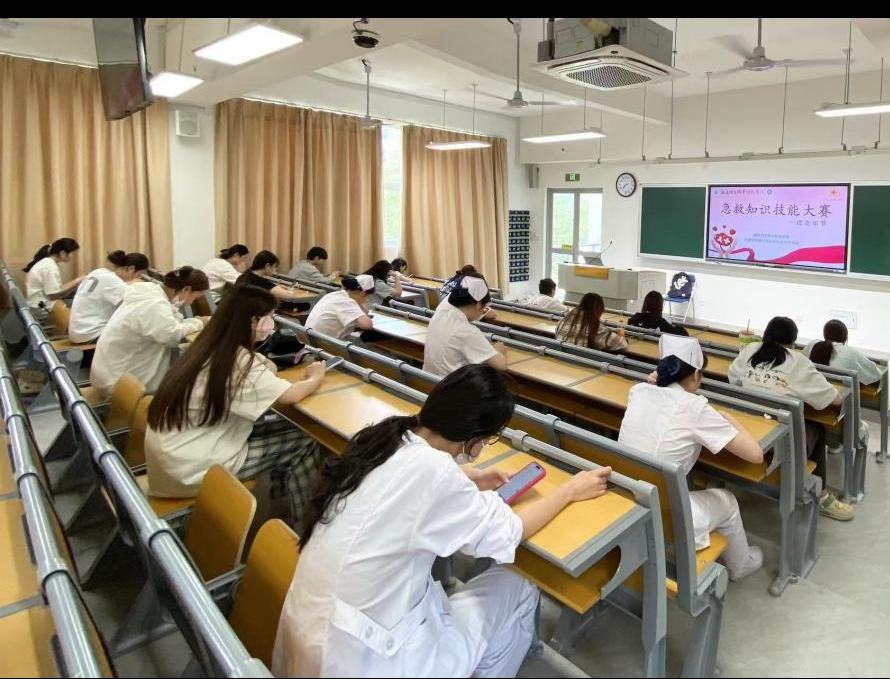 第一環節于2025年4月18日在護理學院第四階梯教室開展,通過理論答題比賽,強化大學生對急救技能的掌握與認知。比賽過程中,同學們自覺遵守考場紀律,全神貫注地審閱題目,從容作答著每一道題,教室內瞬間充滿了激烈的考場氛圍,展示了良好的競賽素養。