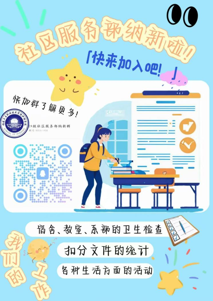 社區(qū)服務(wù)部是督促學(xué)生養(yǎng)成良好的衛(wèi)生習(xí)慣,監(jiān)督學(xué)校環(huán)境衛(wèi)生的重要部門,為同學(xué)們營造一個溫馨的宿舍以及學(xué)習(xí)環(huán)境。社區(qū)服務(wù)部本著公平、公正、公開的原則,認(rèn)真對待每周的勞動衛(wèi)生檢查,最平凡的事情往往指向最崇高的目標(biāo)。