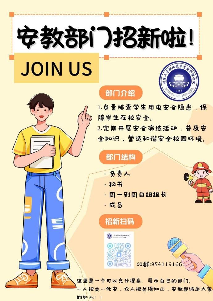 安教部是保障同學(xué)們的在校安全,提高同學(xué)們的安全意識,共同創(chuàng)建美好和諧校園。聯(lián)系校部及系部組織相應(yīng)的活動。以學(xué)院及學(xué)校創(chuàng)造一個具有較強安全意識環(huán)境為己任。